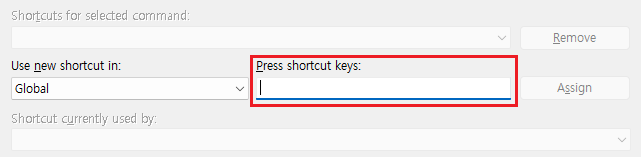 비주얼 스튜디오 키보드 설정 메뉴에서 해당 단축키를 눌러도 아예 입력도 안된다.